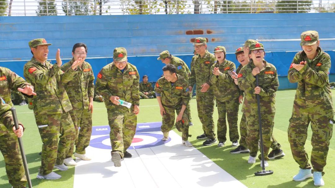 開訓(xùn)前,在破冰啟航環(huán)節(jié)——【智勇通關(guān)】項目中,每組選一個大魔王來防守別隊,該隊隊員依次挑戰(zhàn)大魔王,石頭剪刀布定輸贏,贏了直接通過,輸了轉(zhuǎn)一圈,回來接著挑戰(zhàn),再輸即增加圈數(shù),直到全部隊員通過。大家把團(tuán)隊當(dāng)成了自己的“城堡”,在“對抗魔王”中,每個隊員都拼盡全力,期待被幸運女神光顧,期待團(tuán)隊能盡早完成任務(wù),大家的歡笑聲、喝彩聲灑滿了訓(xùn)練場。